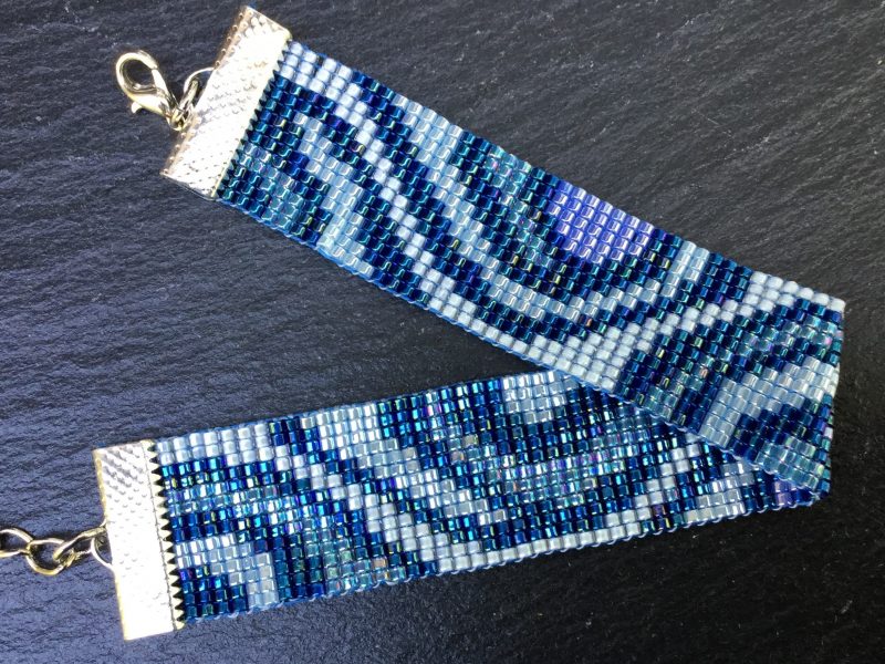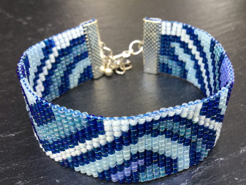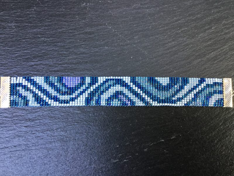 Handgeweven kralenarmband met Miyuki kralen 11/0 in verschillende tinten blauw.