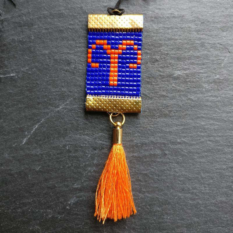 Mooie dierenriem sleutelhanger met het sterrenbeeld Ram. Handgeweven met Miyuki kralen in blauw en oranje met een goudkleurige afwerking en een leuk oranje kwastje.