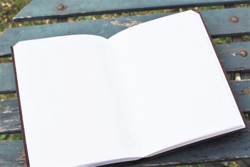 Handgebonden lederen schrift met handgeschept papier. Bruikbaar als dagboek, agenda, gastenboek op een huwelijk, fotoalbum, schetsboek…