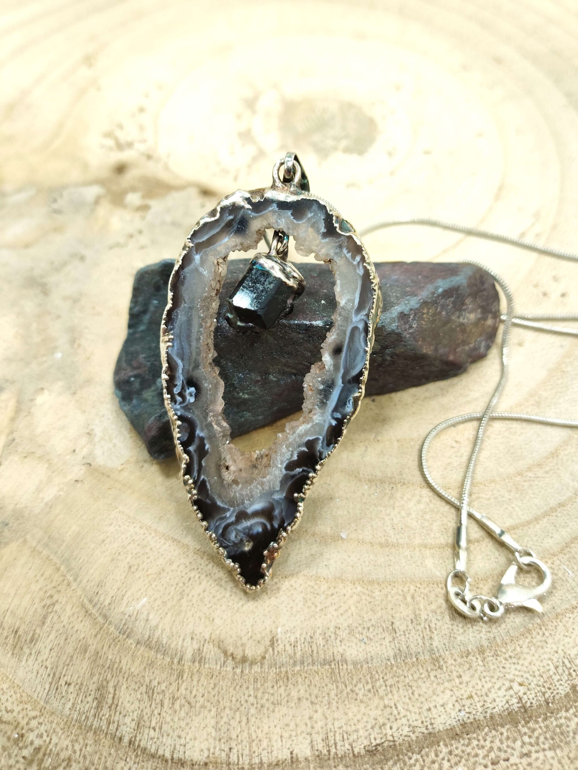 Totale lengte steen met ketting: ong. 51cm.