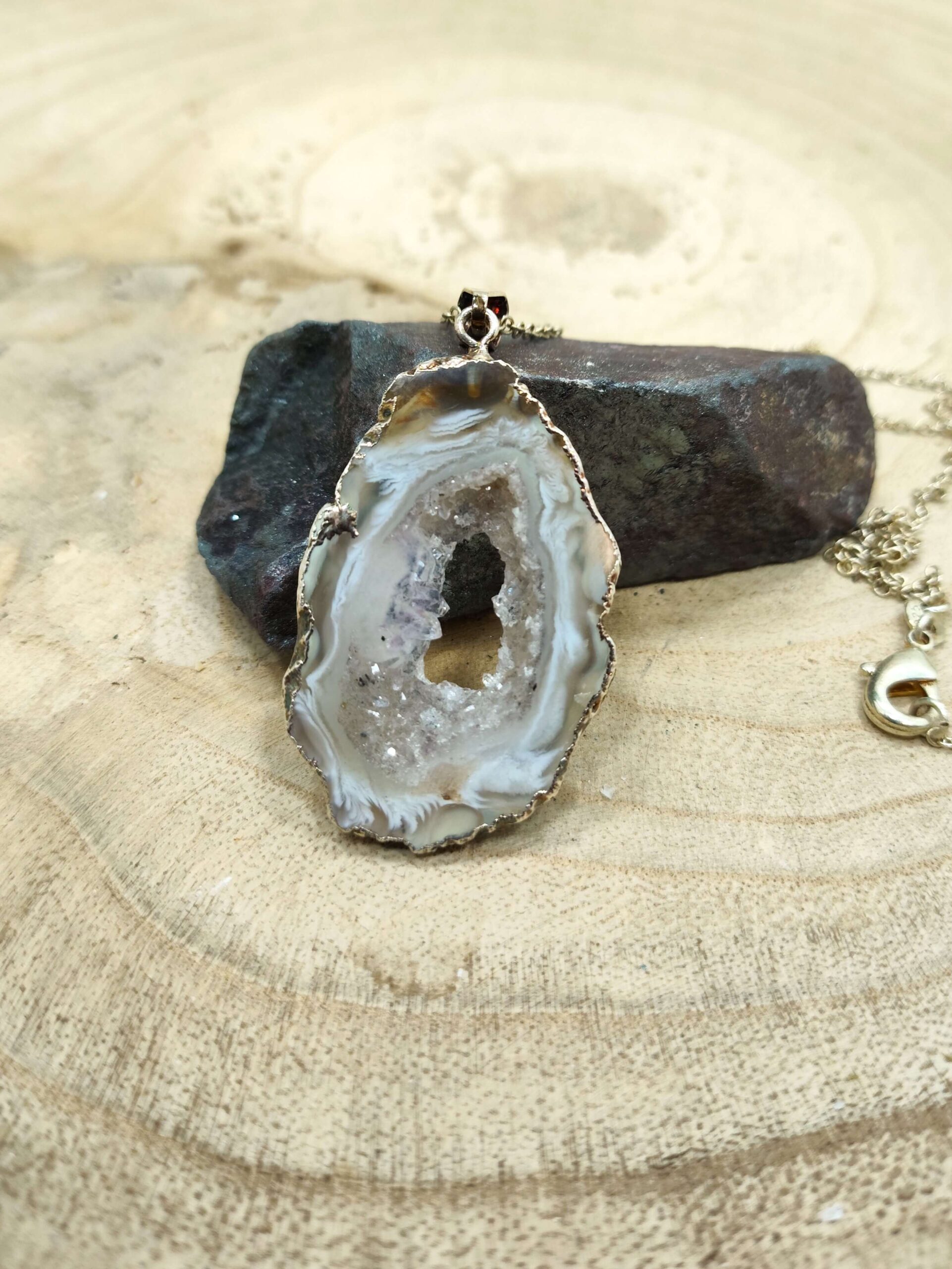 Totale lengte steen met ketting: ong. 49cm.