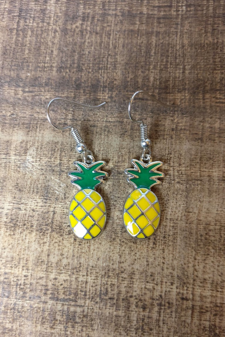 Leuke ananas oorbellen met een zilverkleurige afwerking.