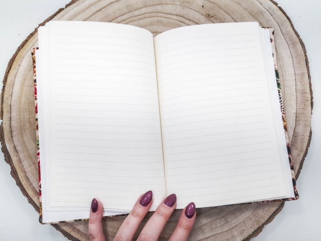 Papier: Gelijnd gerecycleerd fabriekspapier.