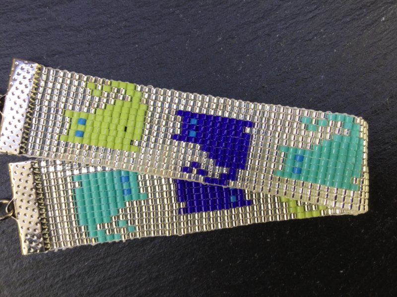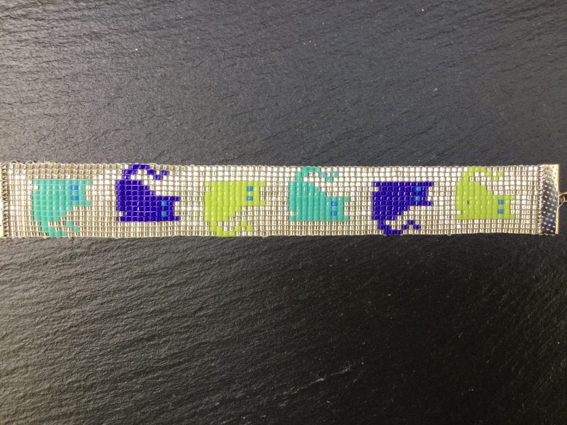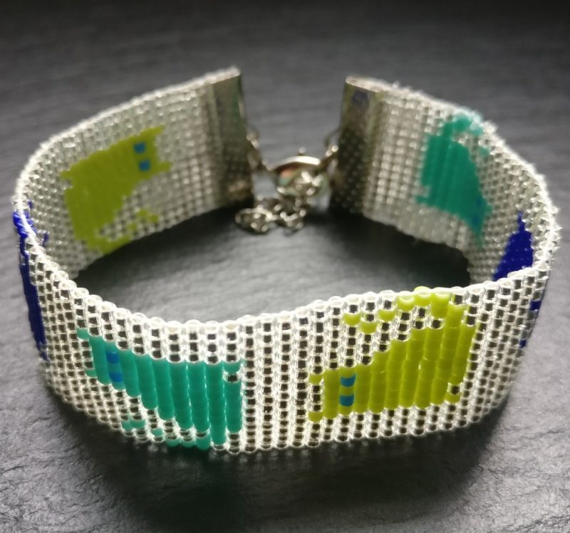 Zilverkleurige handgeweven kralenarmband met 11/0 Miyuki kralen en kleurrijke poesjes. Voor de echte cat lover!