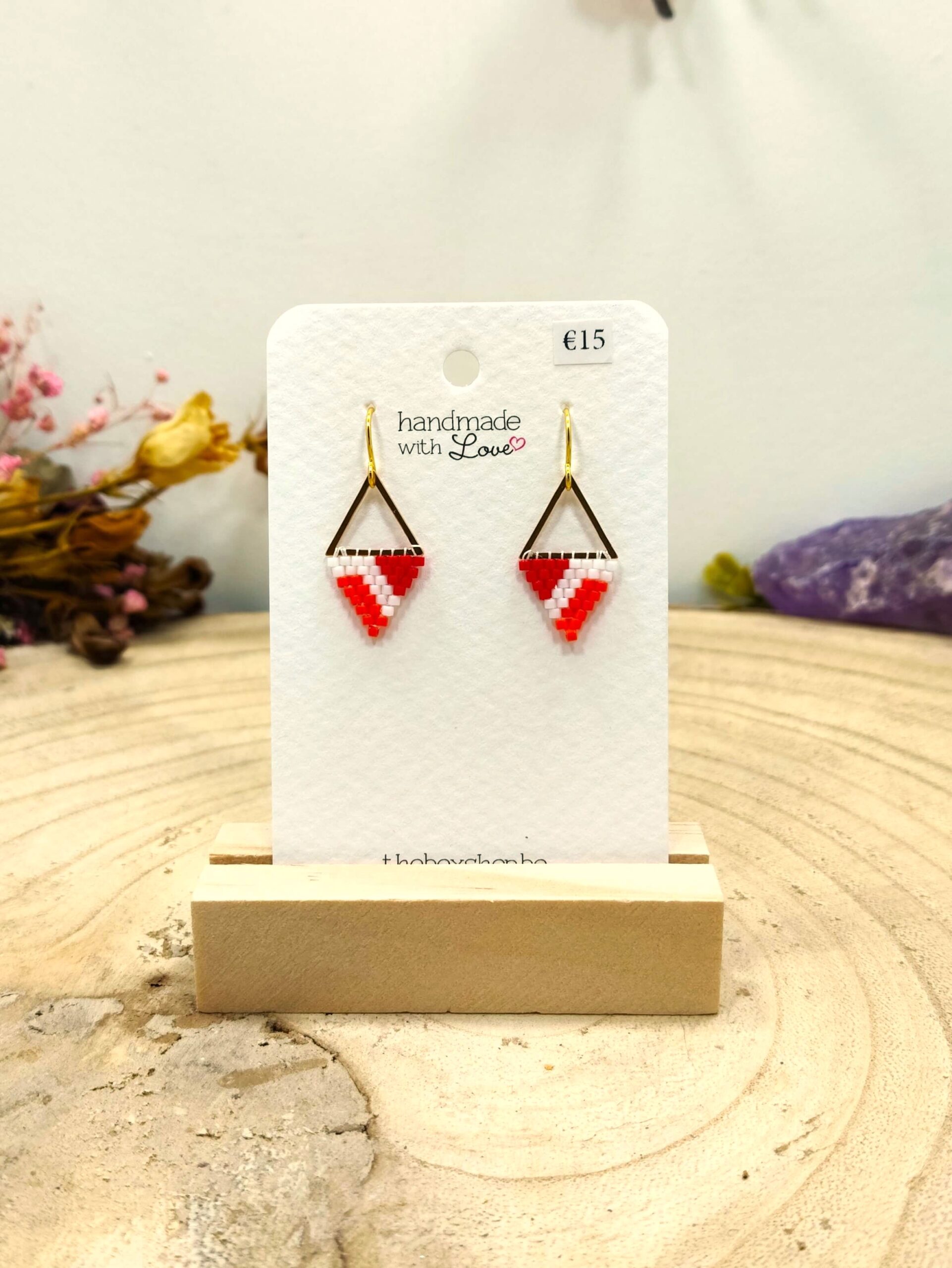 Driehoekige oorhangers rood-wit