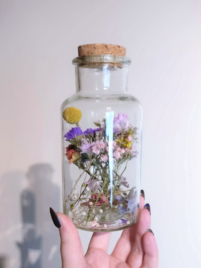 Droogbloemen in medicijnenfles