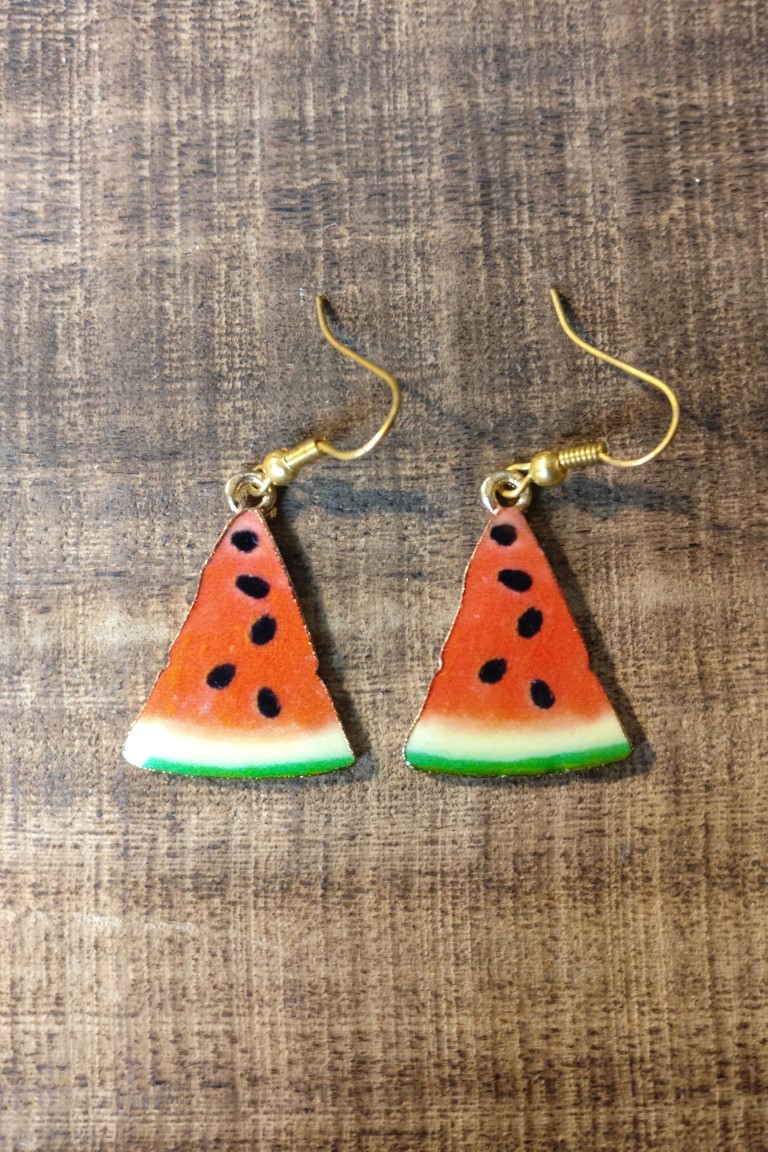Fijne fruitoorbellen met watermeloenen. Goudkleurige afwerking.
