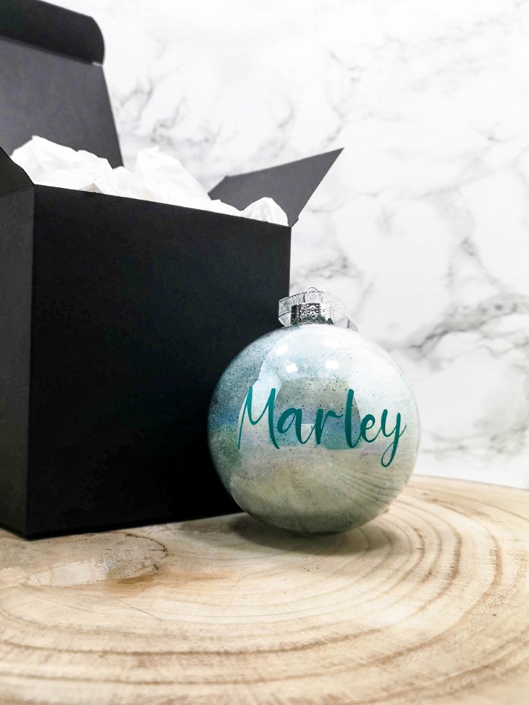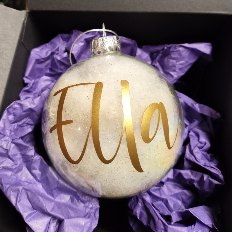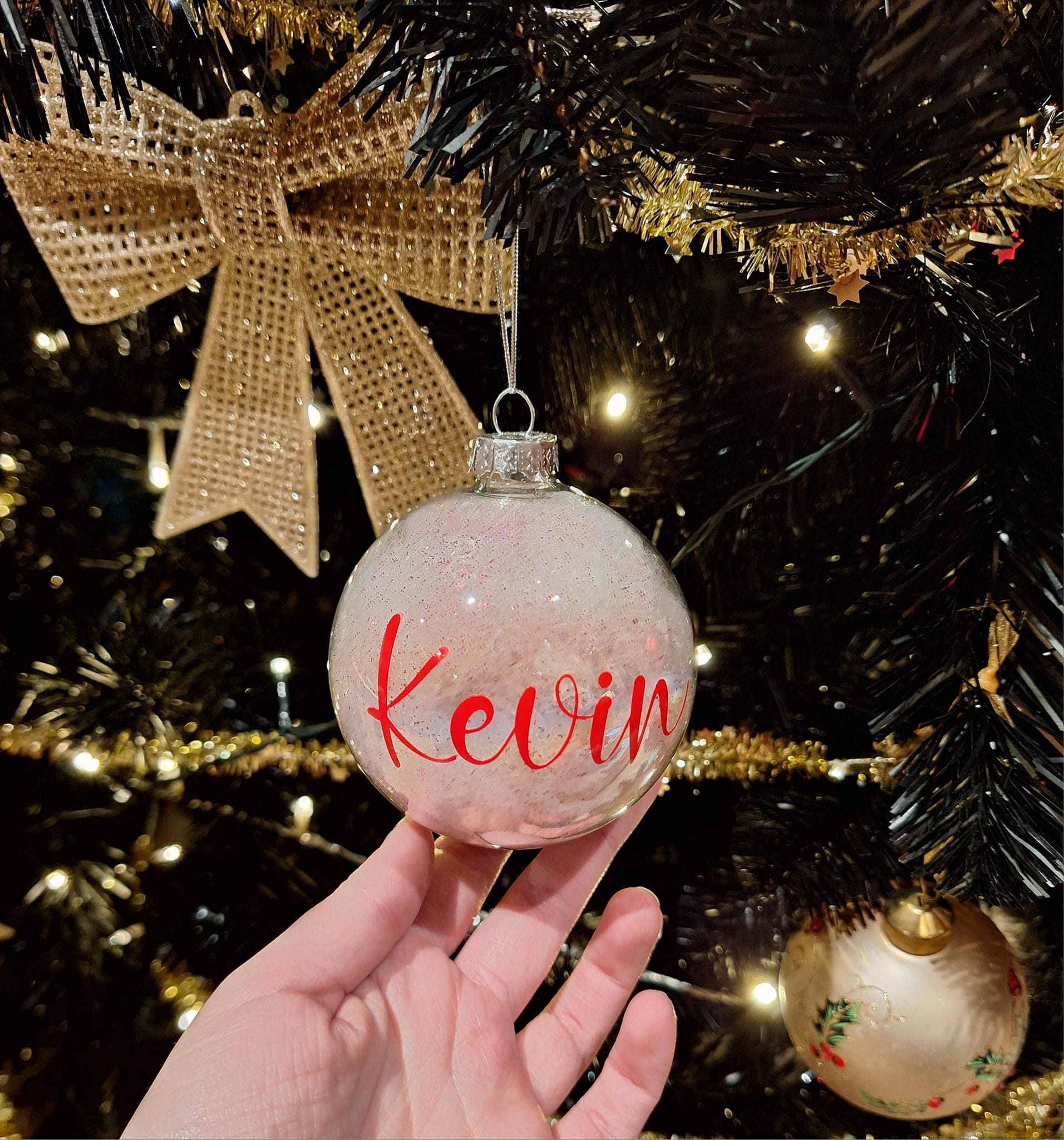 Een gepersonaliseerde kerstbal met naam is echt een leuk kerstcadeau. Deze glazen kerstbal valt extra op in de kerstboom door zijn diameter van 8 centimeter.