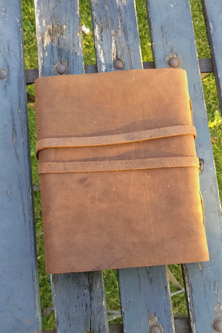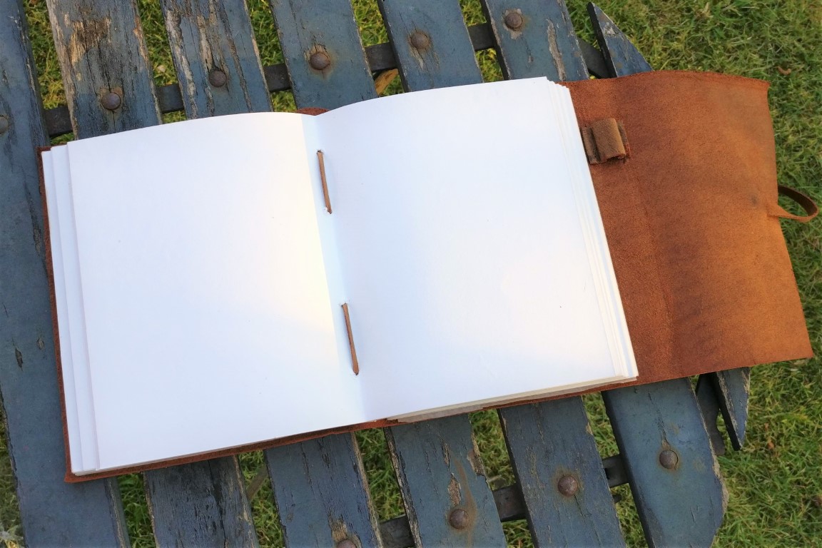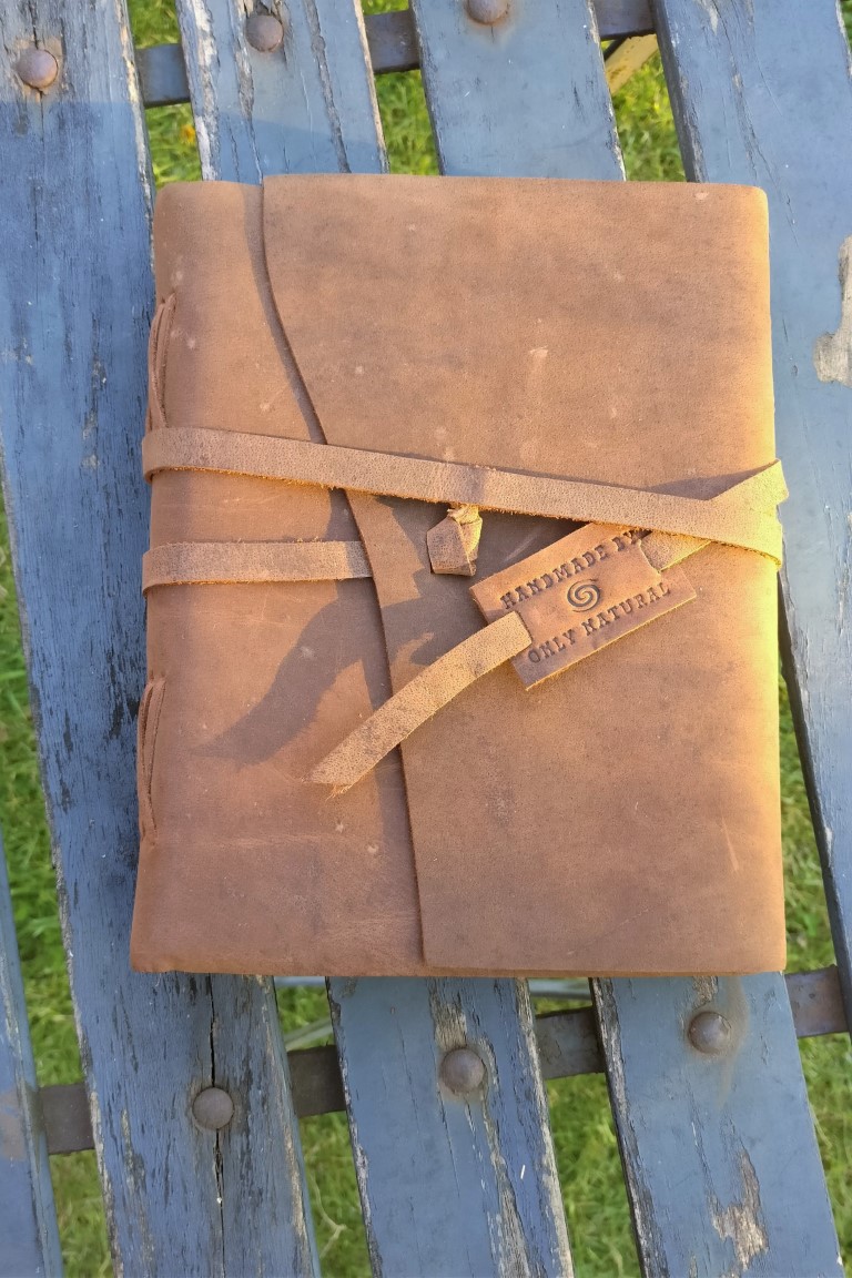 Prachtig handgebonden lederen schrift met handgeschept papier. Bruikbaar als dagboek, agenda, gastenboek op een huwelijk, fotoalbum, schetsboek…