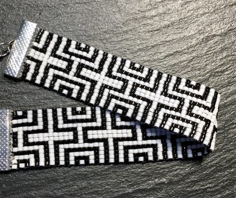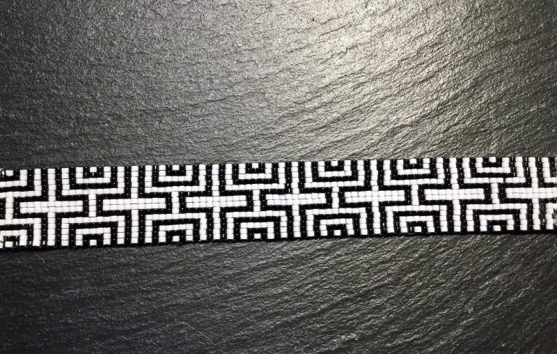 Handgeweven kralenarmband met Miyuki kralen 11/0 in een geometrisch patroon van zwart/wit.