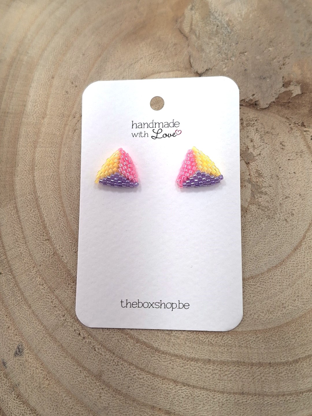 Miyuki oorknopjes paars geel roze