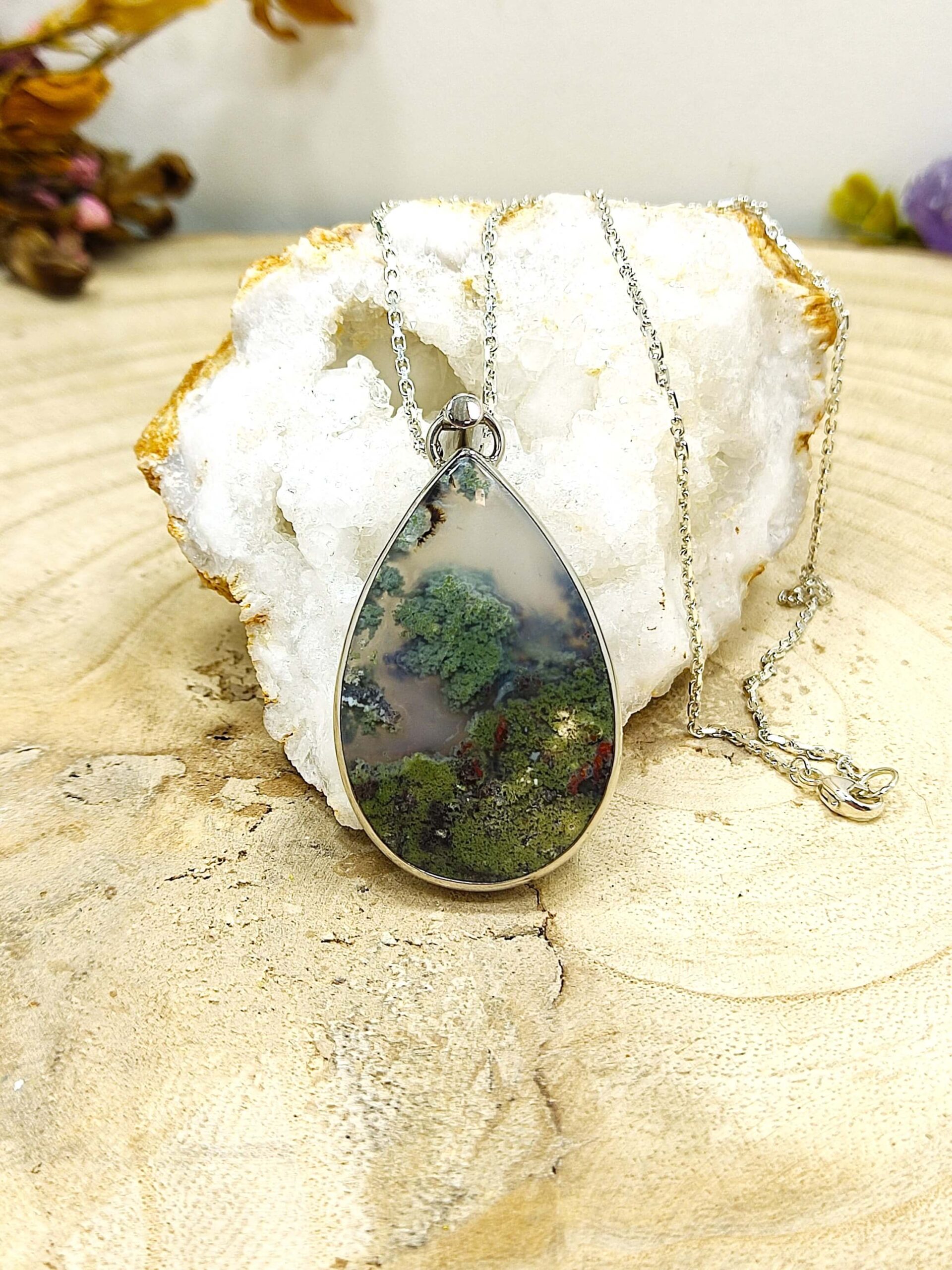Mosagaat halsketting (sterling zilver 925)