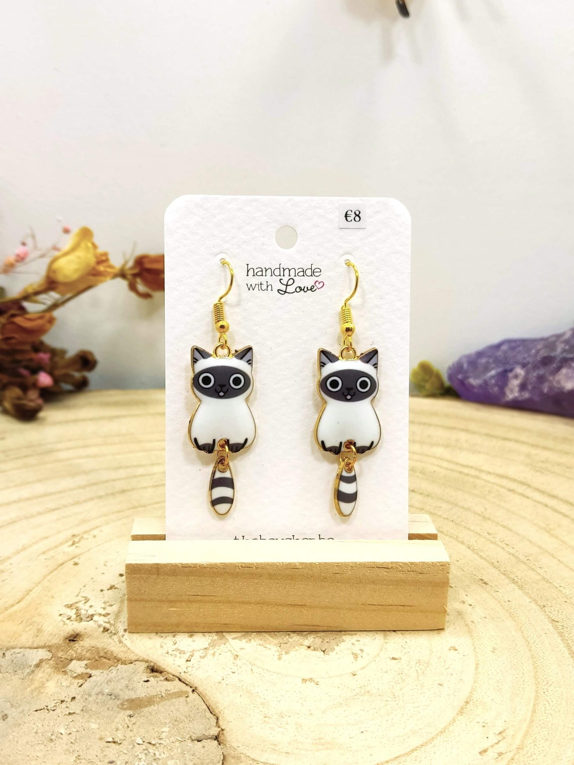 Oorhangers witte kat metaal met goudkleurige oorhaken.