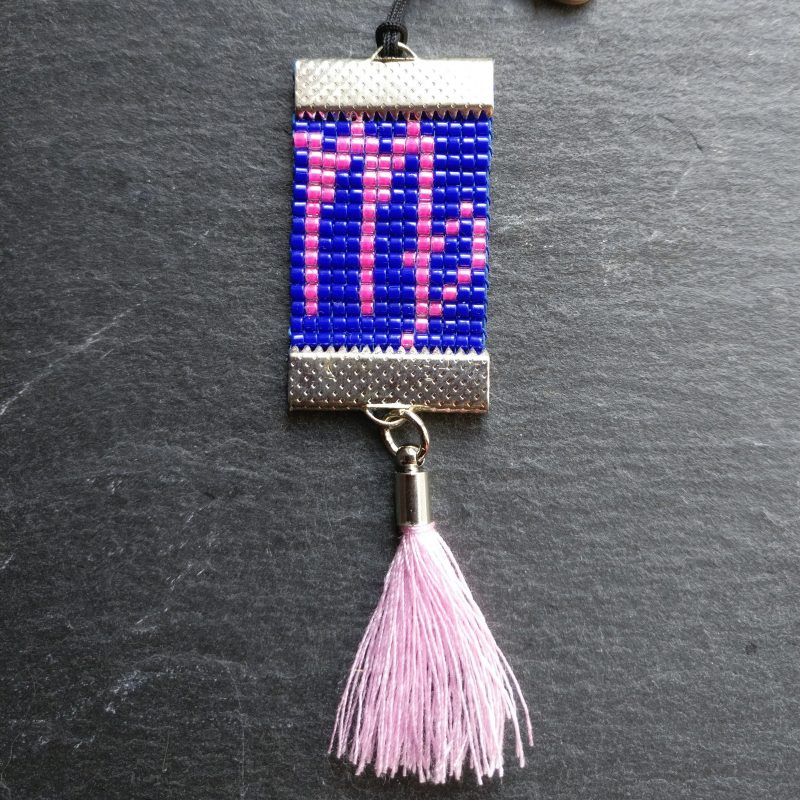 Mooie dierenriem sleutelhanger met het sterrenbeeld Maagd. Handgeweven met Miyuki kralen in blauw en roze met een zilverkleurige afwerking en een leuk roze kwastje.