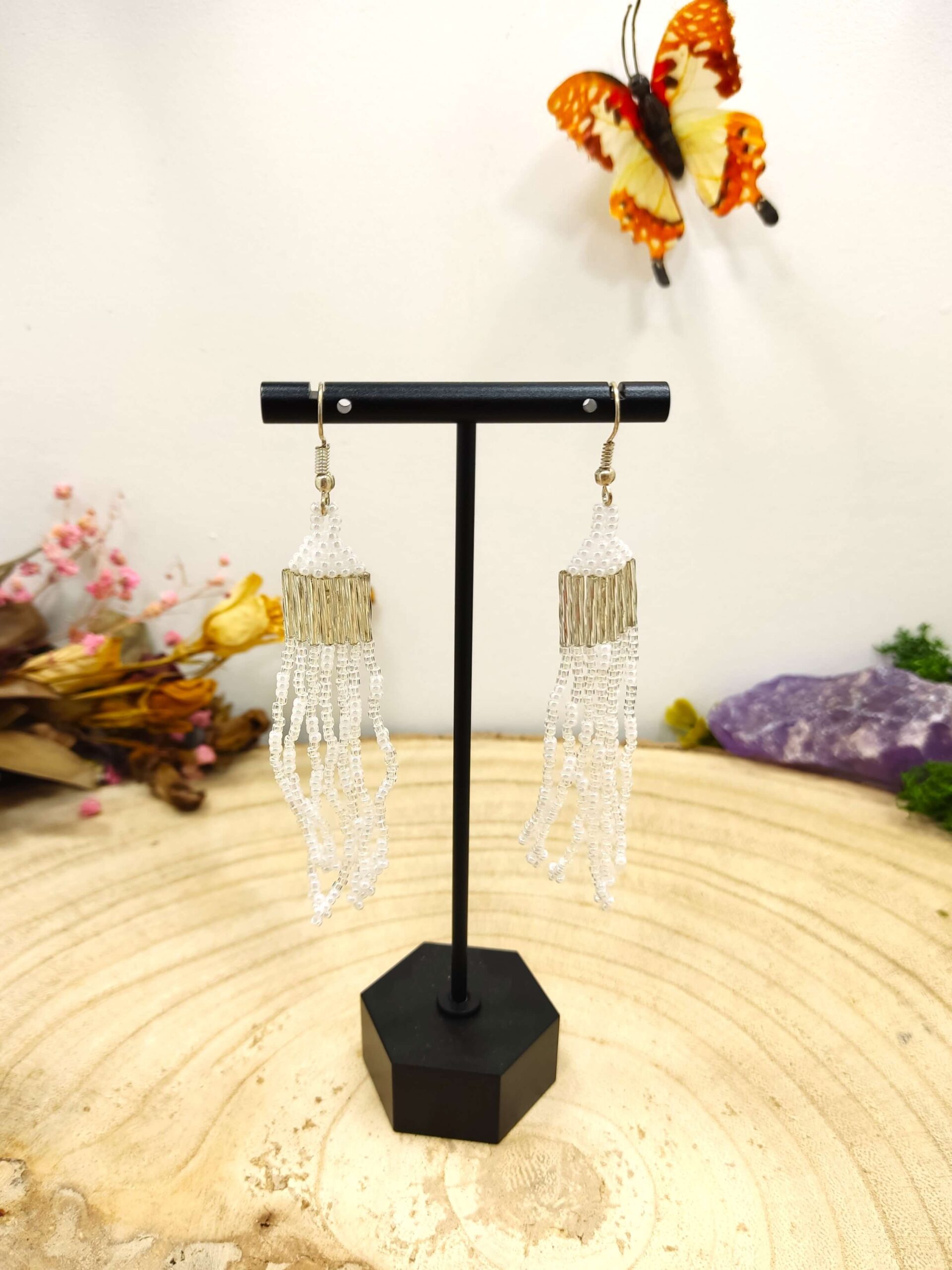 Witte Miyuki frengels oorhangers