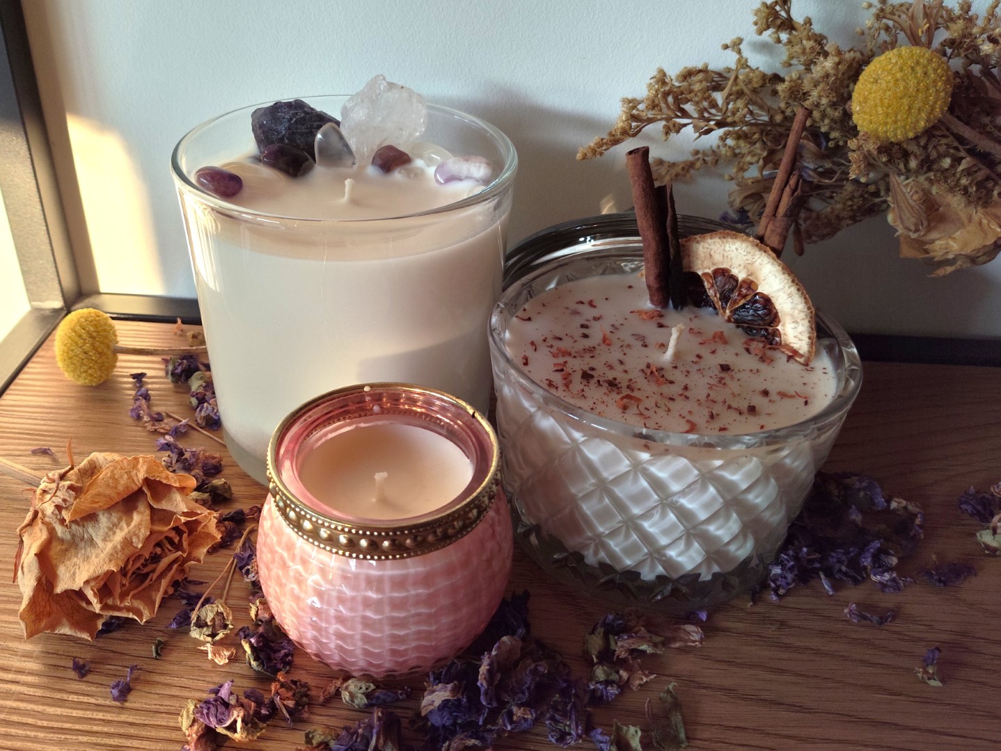 Op het einde van de workshop ga je naar huis met enkele prachtige, handgemaakte kaarsen helemaal naar jouw smaak. Kies zelf de kleur, geur en versiering die je wenst. Een heerlijk ruikende lavendelkaars met amethisten in? Of misschien een simpele kaars zonder geur? Alles mag!