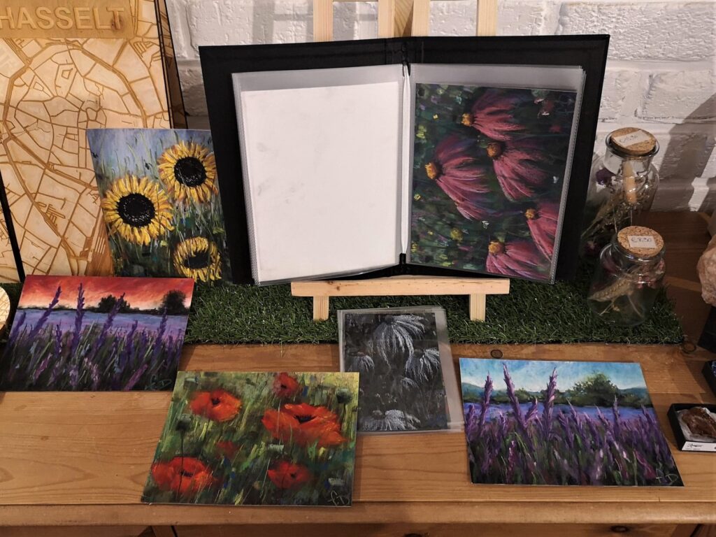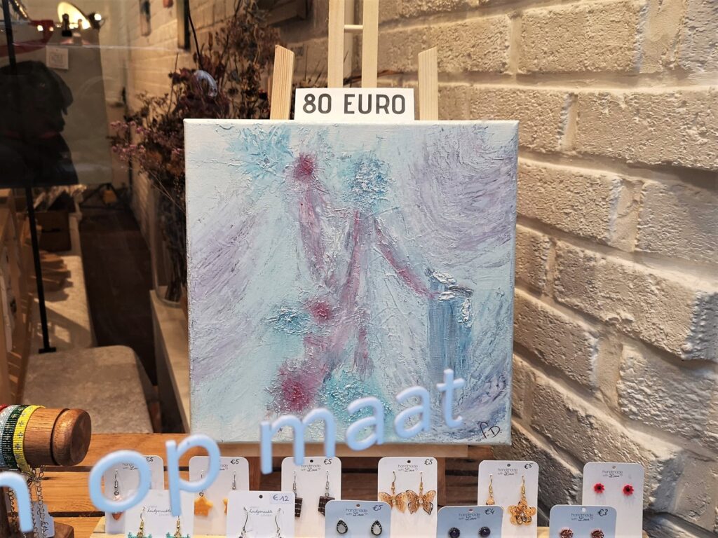 Zonet kwam Joke van Franky Dalle haar schilderijen en wenskaarten een plek geven in de pop-up winkel. Ze passen perfect tussen alle andere mooie spullen, toch?