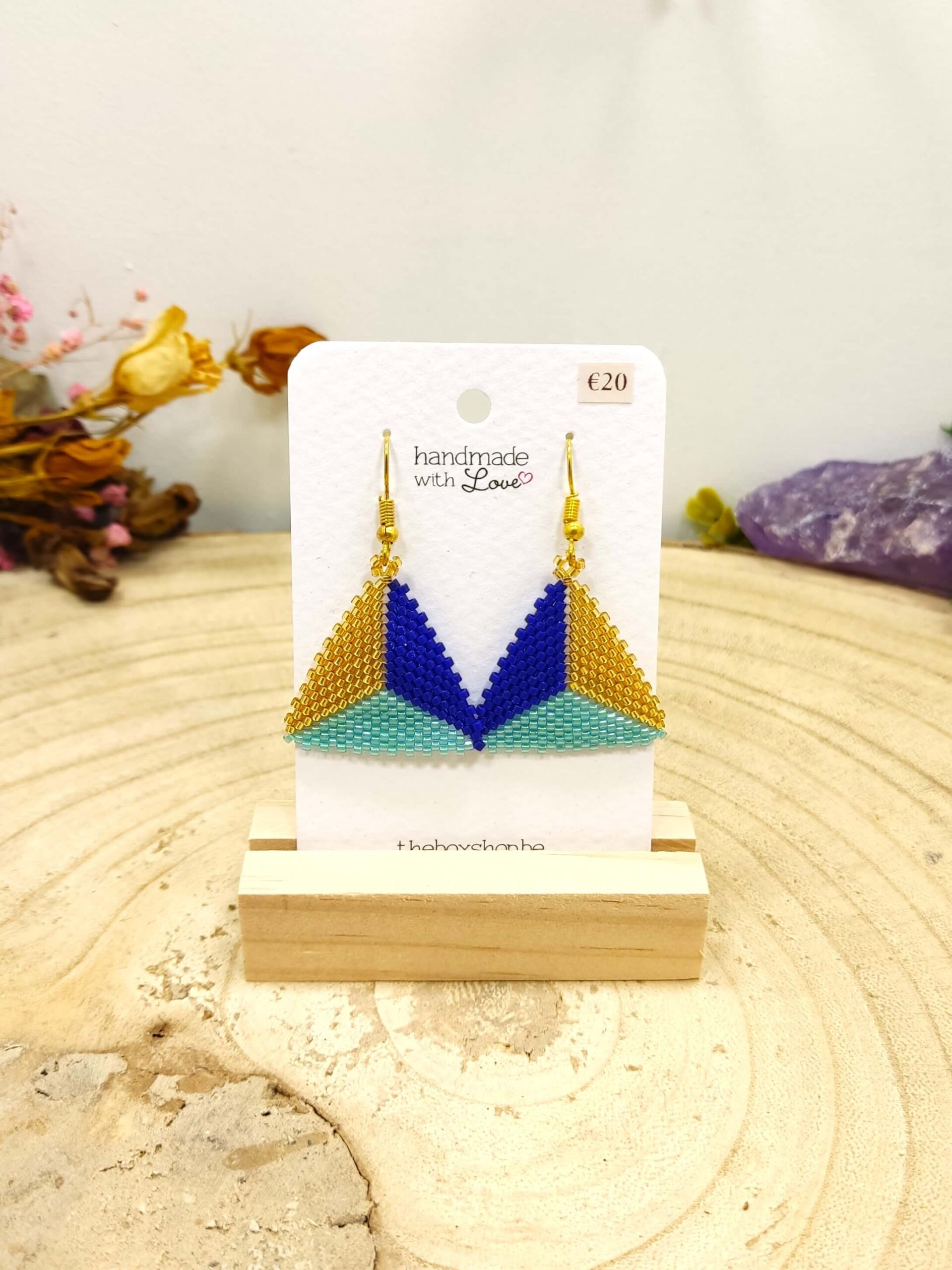 TR009 – Driehoekige oorhangers goud-blauw